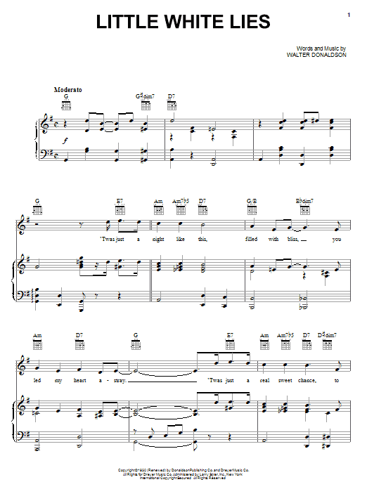 Download or print Mel Torme Little White Lies sheet music, chords and digital score arranged for Piano, Vocal & Guitar Chords (Right-Hand Melody). This Jazz score includes 4 page(s).