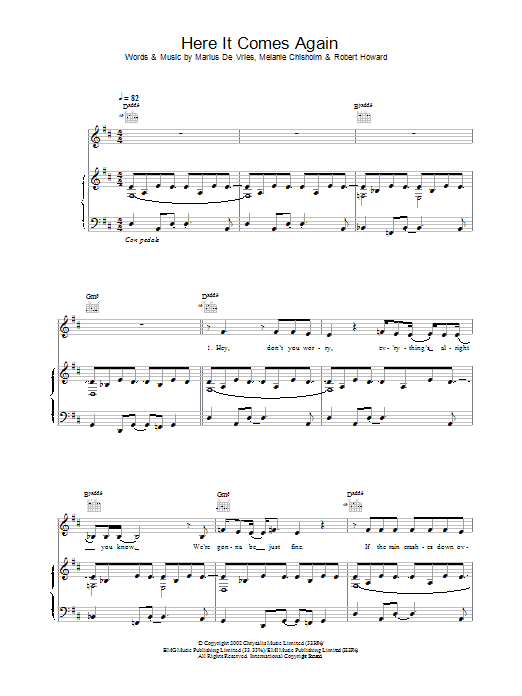 Download or print Melanie C Here It Comes Again sheet music, chords and digital score arranged for Guitar Chords/Lyrics. This Pop score includes 4 page(s).