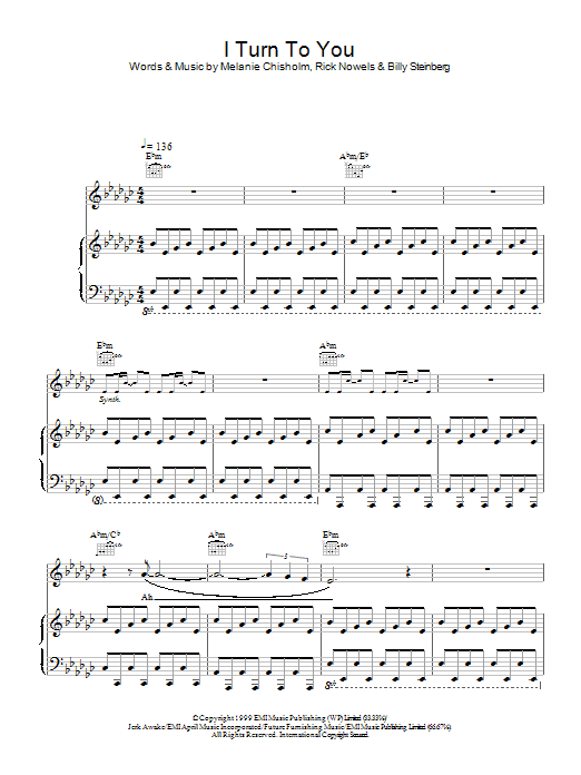 Download or print Melanie C I Turn To You sheet music, chords and digital score arranged for Lead Sheet / Fake Book. This Pop score includes 2 page(s).