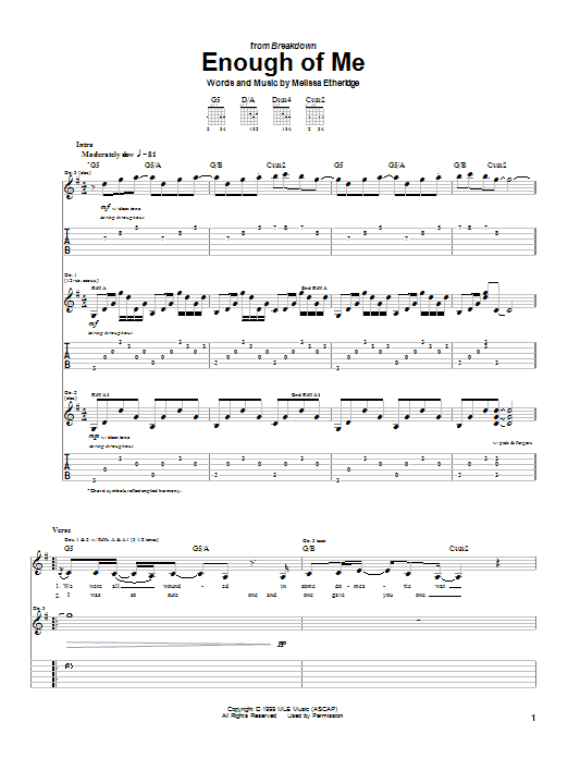 Download or print Melissa Etheridge Enough Of Me sheet music, chords and digital score arranged for Piano, Vocal & Guitar Chords (Right-Hand Melody). This Pop score includes 7 page(s).