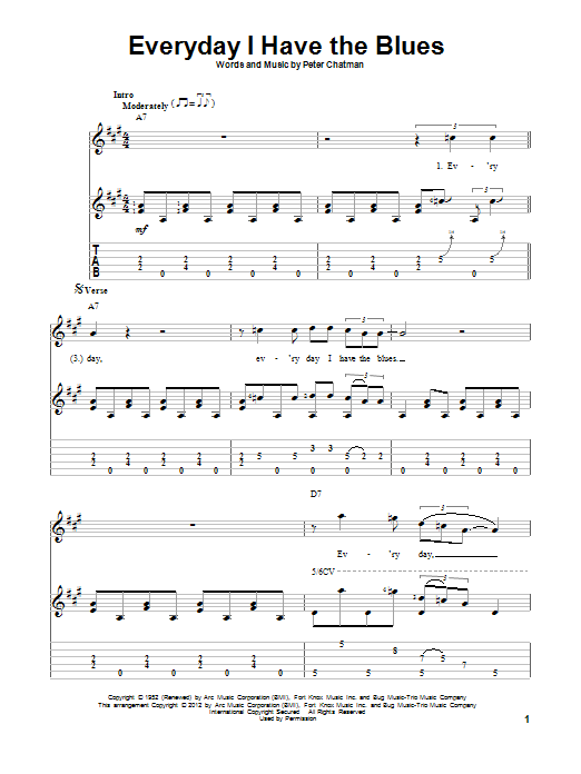 Download or print Memphis Slim Everyday I Have The Blues sheet music, chords and digital score arranged for Solo Guitar. This Pop score includes 4 page(s).