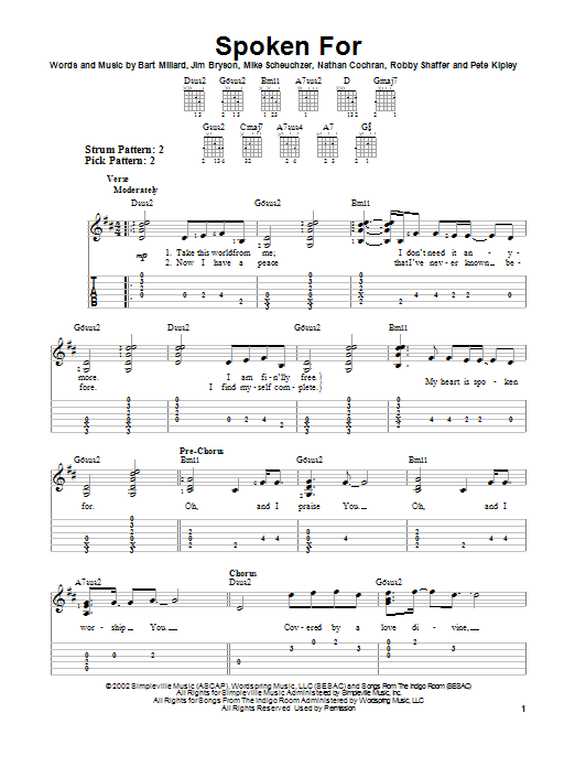 Download or print Mercy Me Spoken For sheet music, chords and digital score arranged for Easy Guitar Tab. This Christian score includes 3 page(s).
