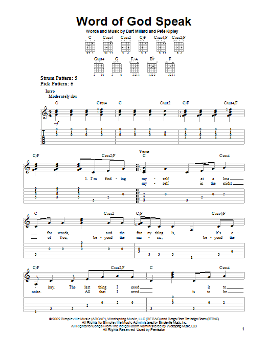 Download or print Mercy Me Word Of God Speak sheet music, chords and digital score arranged for Easy Guitar Tab. This Christian score includes 3 page(s).