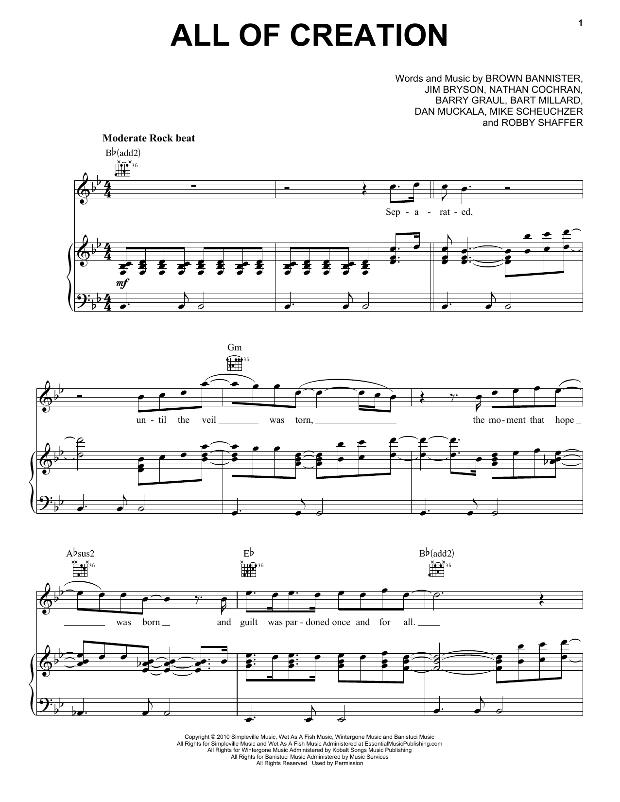 Download or print MercyMe All Of Creation sheet music, chords and digital score arranged for Piano, Vocal & Guitar Chords (Right-Hand Melody). This Christian score includes 5 page(s).
