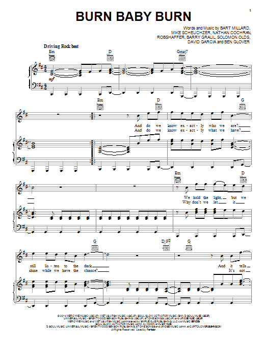 Download or print MercyMe Burn Baby Burn sheet music, chords and digital score arranged for Piano, Vocal & Guitar Chords (Right-Hand Melody). This Christian score includes 6 page(s).