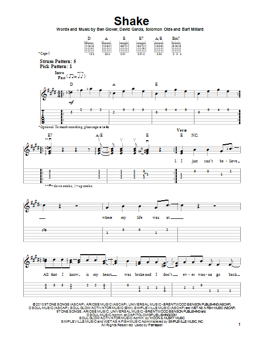 Download or print MercyMe Shake sheet music, chords and digital score arranged for Piano, Vocal & Guitar Chords (Right-Hand Melody). This Christian score includes 10 page(s).