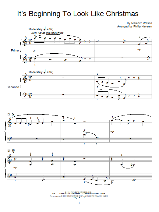Download or print Meredith Willson It's Beginning To Look Like Christmas (arr. Phillip Keveren) sheet music, chords and digital score arranged for Piano Duet. This Children score includes 5 page(s).