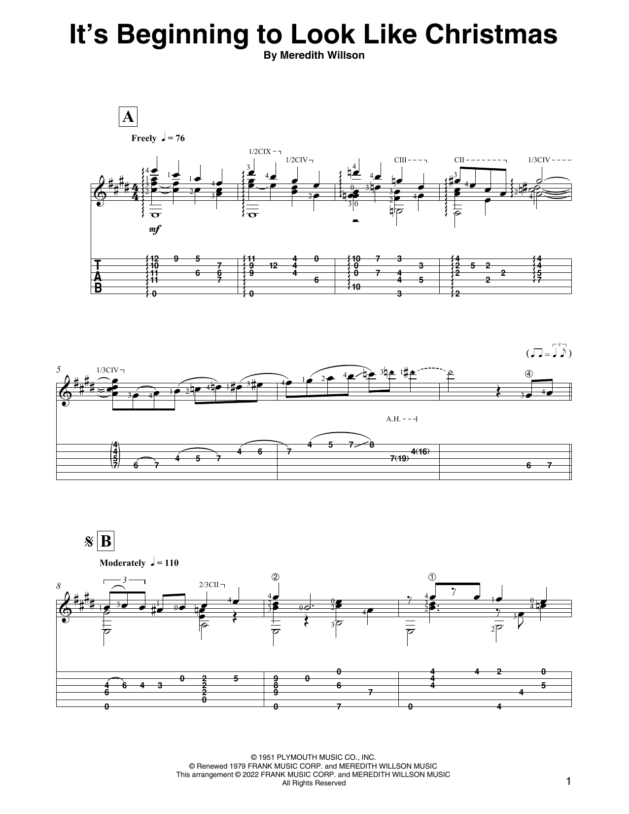 Download or print Meredith Willson It's Beginning To Look Like Christmas (arr. David Jaggs) sheet music, chords and digital score arranged for Solo Guitar. This Christmas score includes 3 page(s).