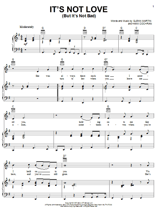 Download or print Merle Haggard It's Not Love (But It's Not Bad) sheet music, chords and digital score arranged for Piano, Vocal & Guitar Chords (Right-Hand Melody). This Country score includes 3 page(s).