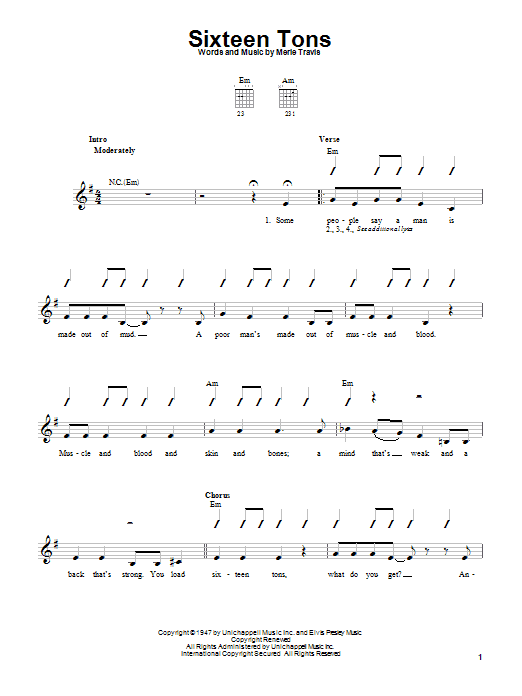 Download or print Merle Travis Sixteen Tons sheet music, chords and digital score arranged for Guitar Tab. This Country score includes 6 page(s).
