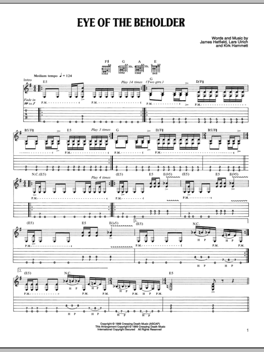 Download or print Metallica Eye Of The Beholder sheet music, chords and digital score arranged for Bass Guitar Tab. This Pop score includes 7 page(s).