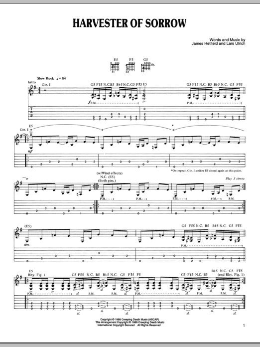 Download or print Metallica Harvester Of Sorrow sheet music, chords and digital score arranged for Bass Guitar Tab. This Pop score includes 6 page(s).