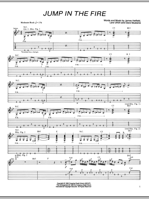 Download or print Metallica Jump In The Fire sheet music, chords and digital score arranged for Guitar Tab. This Metal score includes 7 page(s).