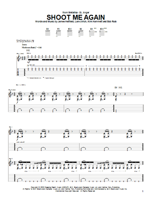 Download or print Metallica Shoot Me Again sheet music, chords and digital score arranged for Guitar Tab. This Metal score includes 11 page(s).