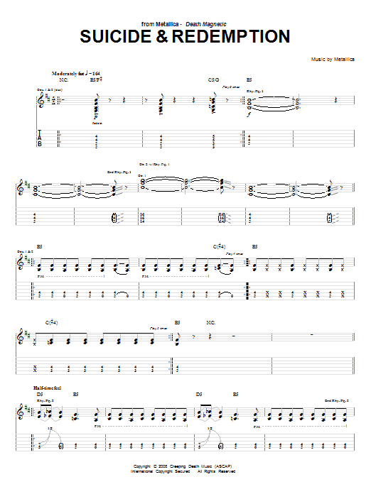 Download or print Metallica Suicide & Redemption sheet music, chords and digital score arranged for Guitar Tab. This Metal score includes 19 page(s).