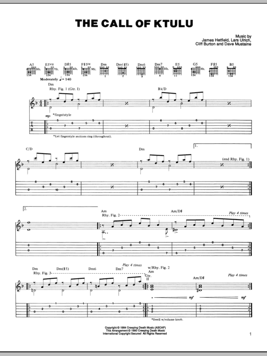 Download or print Metallica The Call Of Ktulu sheet music, chords and digital score arranged for Guitar Tab. This Pop score includes 8 page(s).