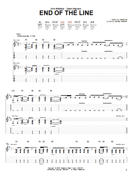 Download or print Metallica The End Of The Line sheet music, chords and digital score arranged for Bass Guitar Tab. This Metal score includes 12 page(s).