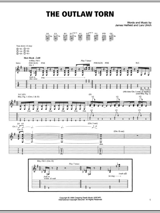 Download or print Metallica The Outlaw Torn sheet music, chords and digital score arranged for Guitar Tab. This Pop score includes 11 page(s).