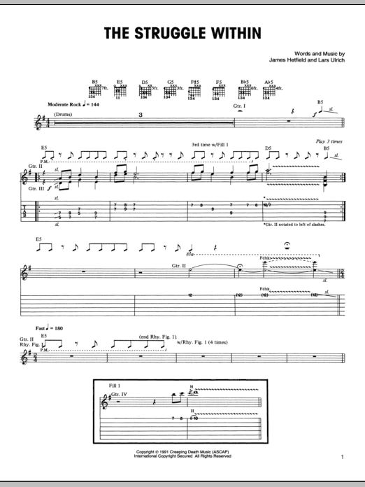 Download or print Metallica The Struggle Within sheet music, chords and digital score arranged for Guitar Tab. This Pop score includes 7 page(s).