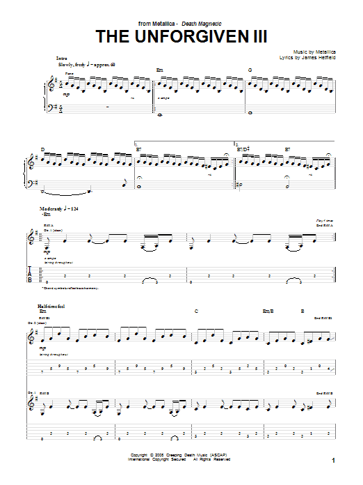 Download or print Metallica The Unforgiven III sheet music, chords and digital score arranged for Guitar Tab. This Metal score includes 10 page(s).
