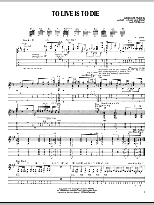 Download or print Metallica To Live Is To Die sheet music, chords and digital score arranged for Guitar Chords/Lyrics. This Metal score includes 3 page(s).
