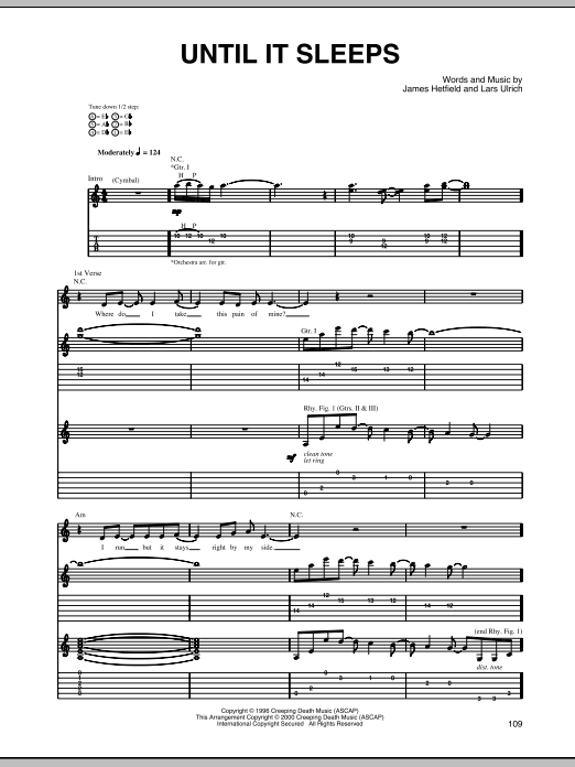 Download or print Metallica Until It Sleeps (Live S&M version) sheet music, chords and digital score arranged for Guitar Tab. This Metal score includes 12 page(s).