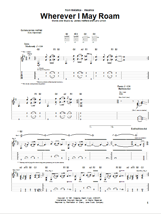 Download or print Metallica Wherever I May Roam sheet music, chords and digital score arranged for Guitar Tab. This Rock score includes 13 page(s).