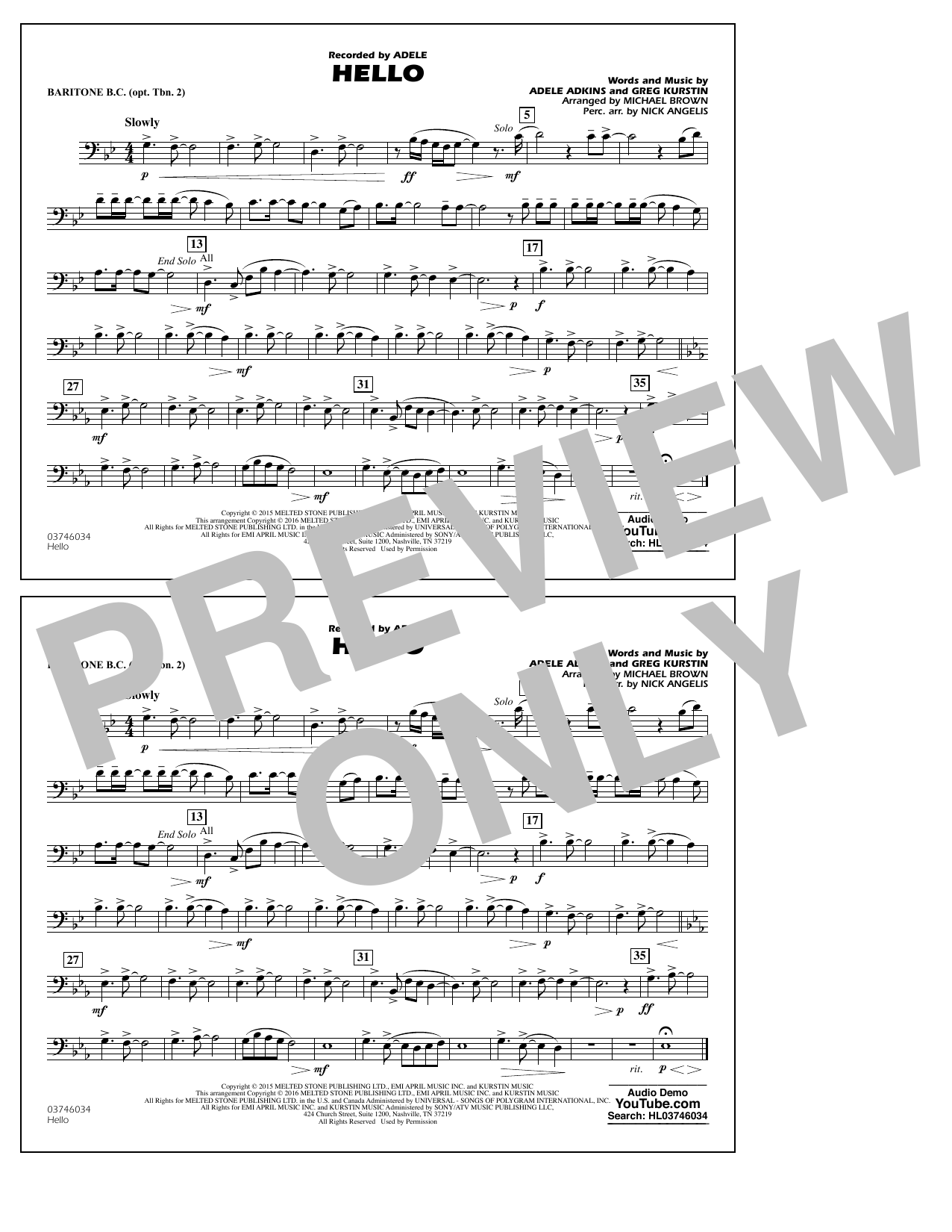 Quick facts Hello - Baritone B.C. (Opt. Tbn. 2) about digital sheet music
