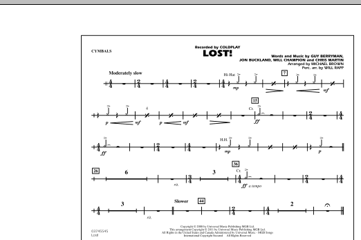 Download or print Michael Brown Lost! - Cymbals sheet music, chords and digital score arranged for Marching Band. This Pop score includes 1 page(s).
