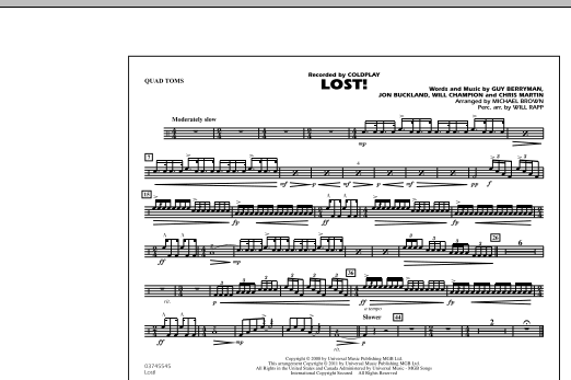 Download or print Michael Brown Lost! - Quad Toms sheet music, chords and digital score arranged for Marching Band. This Pop score includes 1 page(s).