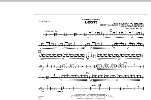 Download or print Michael Brown Lost! - Snare Drum sheet music, chords and digital score arranged for Marching Band. This Pop score includes 1 page(s).