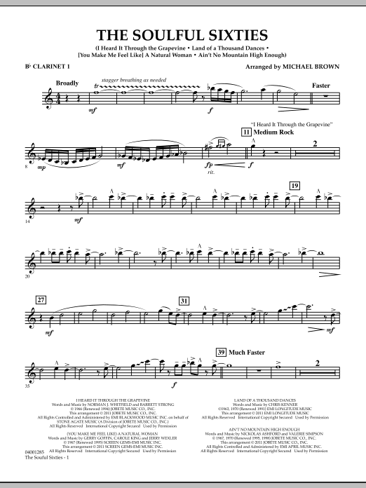Download or print Michael Brown The Soulful Sixties - Bb Clarinet 1 sheet music, chords and digital score arranged for Concert Band. This Pop score includes 3 page(s).