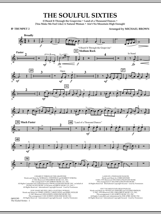 Download or print Michael Brown The Soulful Sixties - Bb Trumpet 2 sheet music, chords and digital score arranged for Concert Band. This Pop score includes 2 page(s).