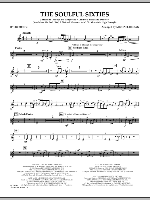 Download or print Michael Brown The Soulful Sixties - Bb Trumpet 3 sheet music, chords and digital score arranged for Concert Band. This Pop score includes 2 page(s).