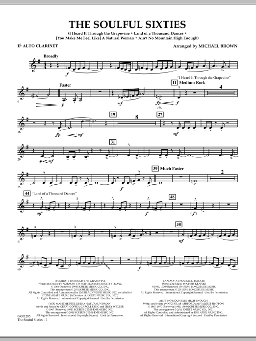 Download or print Michael Brown The Soulful Sixties - Eb Alto Clarinet sheet music, chords and digital score arranged for Concert Band. This Pop score includes 2 page(s).