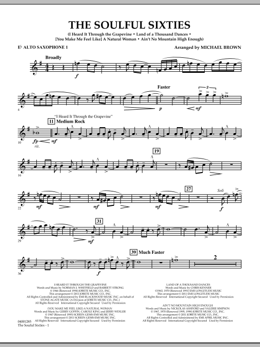 Download or print Michael Brown The Soulful Sixties - Eb Alto Saxophone 1 sheet music, chords and digital score arranged for Concert Band. This Pop score includes 3 page(s).
