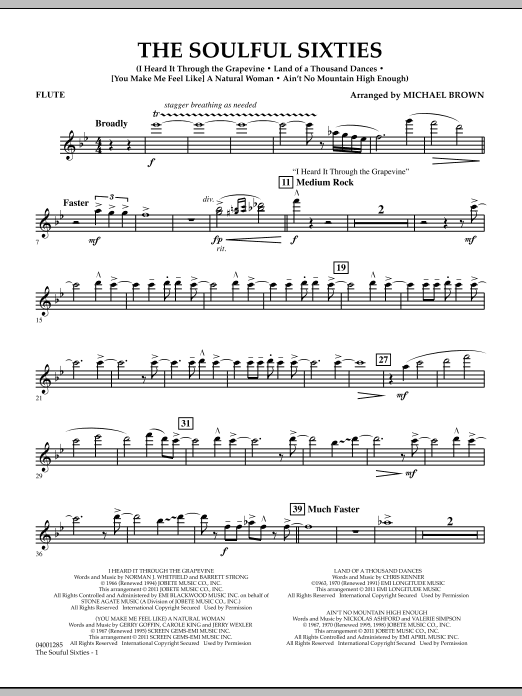 Download or print Michael Brown The Soulful Sixties - Flute sheet music, chords and digital score arranged for Concert Band. This Pop score includes 3 page(s).