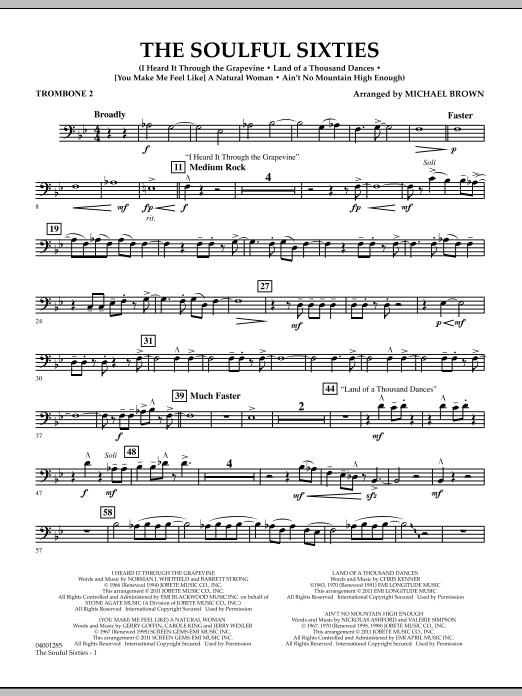 Download or print Michael Brown The Soulful Sixties - Trombone 2 sheet music, chords and digital score arranged for Concert Band. This Pop score includes 2 page(s).