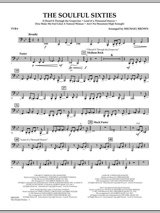 Download or print Michael Brown The Soulful Sixties - Tuba sheet music, chords and digital score arranged for Concert Band. This Pop score includes 2 page(s).