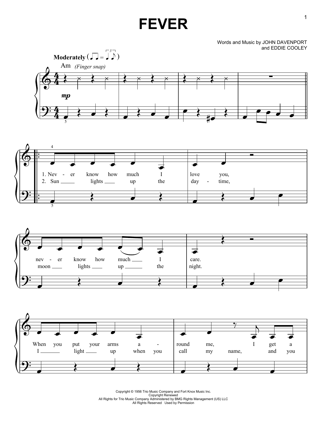 Download or print Michael Buble Fever sheet music, chords and digital score arranged for Easy Piano. This Jazz score includes 5 page(s).