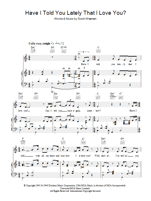 Download or print Michael Buble Have I Told You Lately That I Love You? sheet music, chords and digital score arranged for Piano, Vocal & Guitar Chords. This Pop score includes 7 page(s).