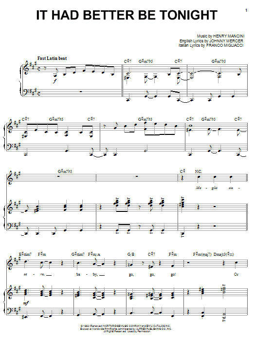 Download or print Michael Buble It Had Better Be Tonight sheet music, chords and digital score arranged for Piano & Vocal. This Jazz score includes 13 page(s).