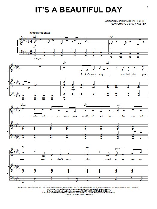 Download or print Michael Buble It's A Beautiful Day sheet music, chords and digital score arranged for Piano, Vocal & Guitar Chords (Right-Hand Melody). This Pop score includes 8 page(s).