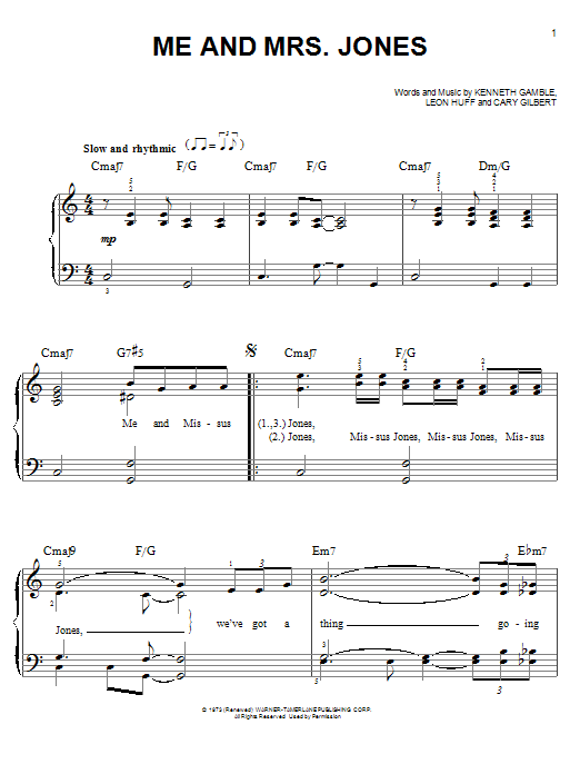 Download or print Michael Buble Me And Mrs. Jones sheet music, chords and digital score arranged for Piano, Vocal & Guitar Chords (Right-Hand Melody). This Jazz score includes 4 page(s).