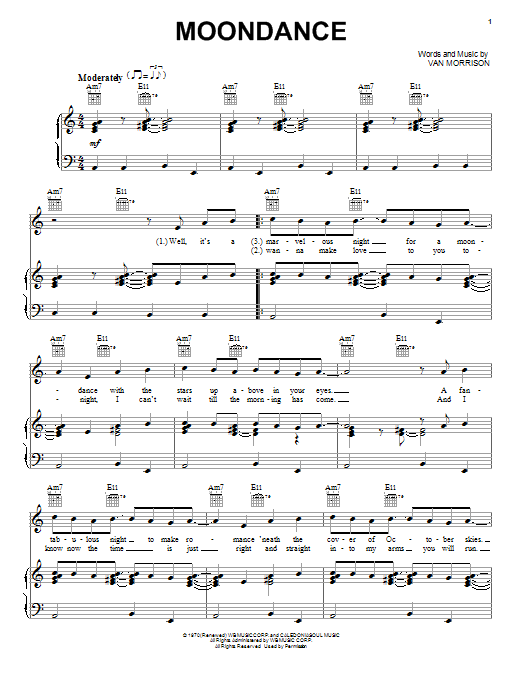 Download or print Michael Buble Moondance sheet music, chords and digital score arranged for Piano, Vocal & Guitar Chords (Right-Hand Melody). This Jazz score includes 5 page(s).