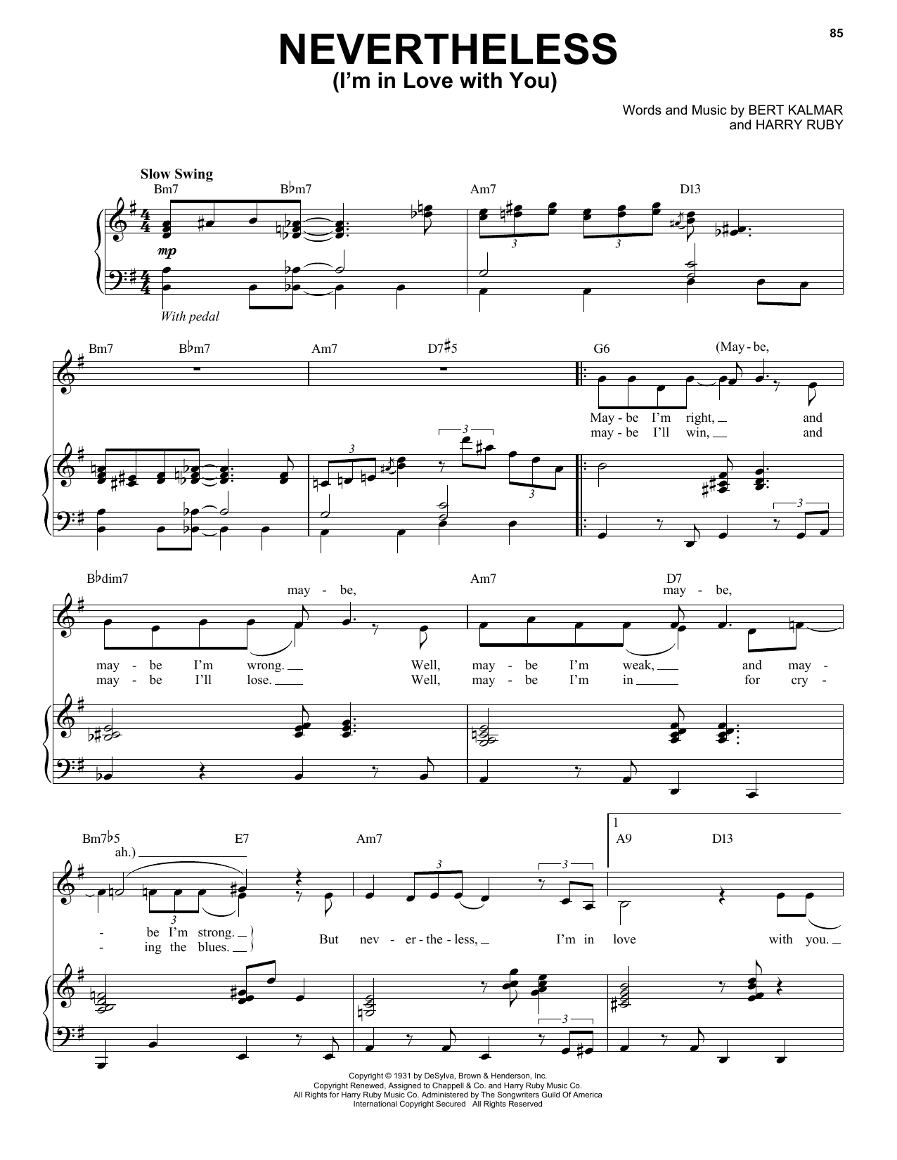 Download or print Michael Buble Nevertheless (I'm In Love With You) sheet music, chords and digital score arranged for Piano, Vocal & Guitar Chords (Right-Hand Melody). This Jazz score includes 3 page(s).