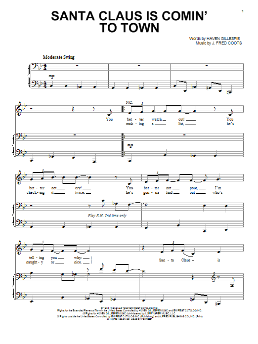 Download or print Michael Bublé Santa Claus Is Comin' To Town sheet music, chords and digital score arranged for Piano & Vocal. This Children score includes 7 page(s).
