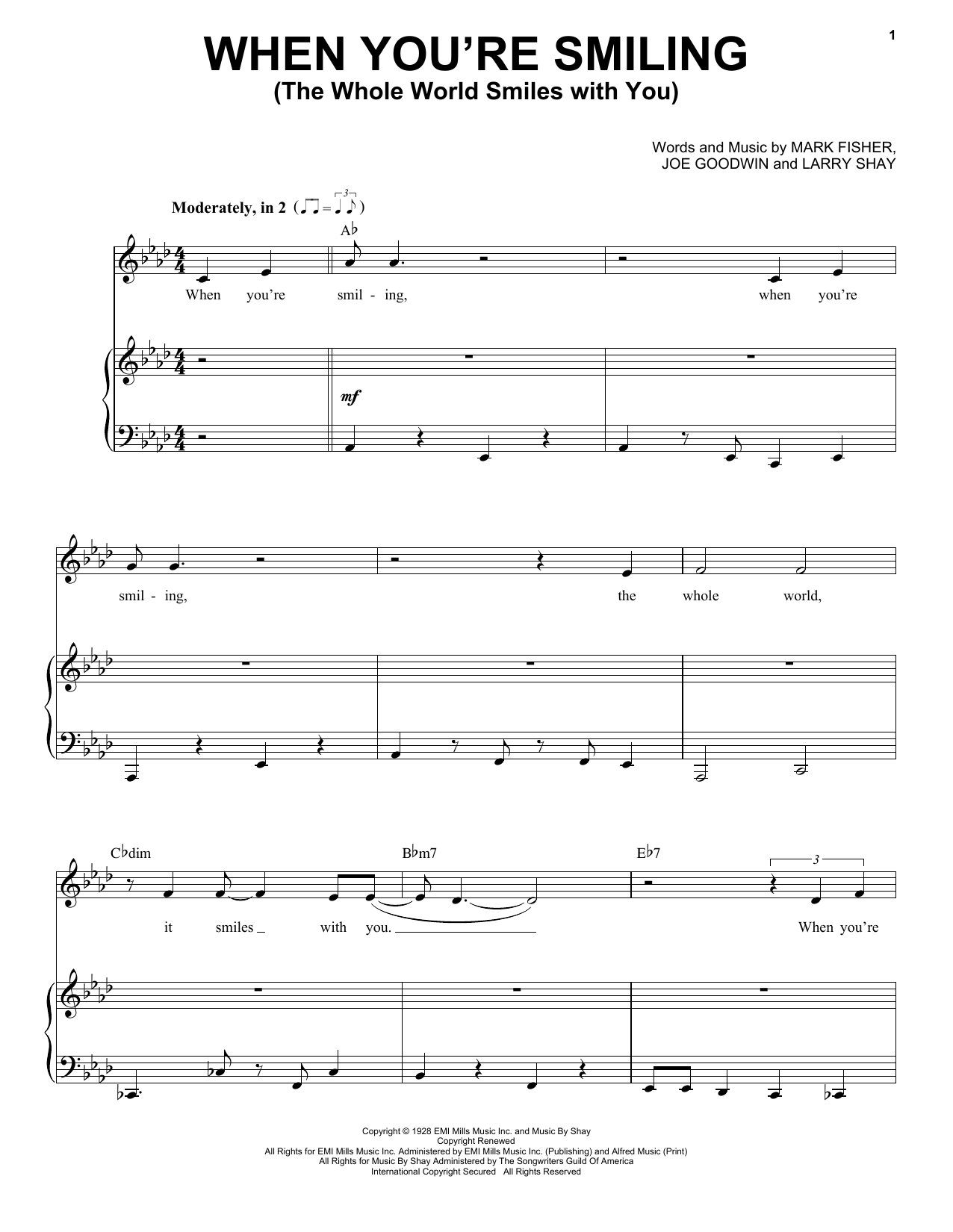 Download or print Michael Bublé When You're Smiling sheet music, chords and digital score arranged for Piano & Vocal. This Jazz score includes 9 page(s).