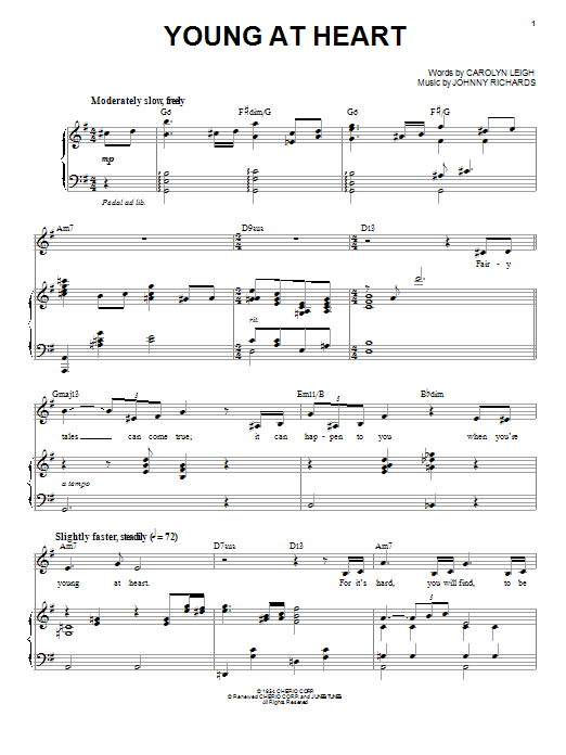 Download or print Michael Buble Young At Heart sheet music, chords and digital score arranged for Piano, Vocal & Guitar Chords (Right-Hand Melody). This Jazz score includes 6 page(s).