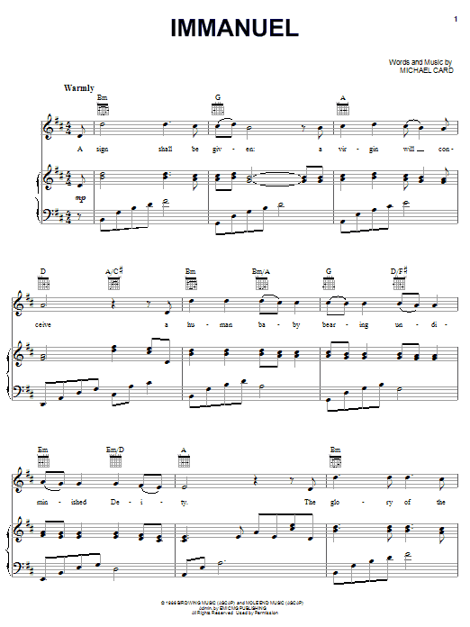 Download or print Michael Card Immanuel sheet music, chords and digital score arranged for Easy Guitar Tab. This Christmas score includes 4 page(s).